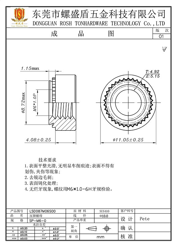壓鉚螺母 SP-M6-0