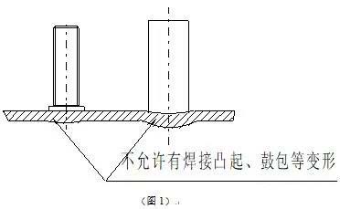 2、施焊前準備:為了保證產(chǎn)品的外觀質量,避免焊后零件背面起包,現(xiàn)要求壁厚≤1.5 mm的零件必須放于平板之上進行儲能焊;對于壁厚≥2 mm的零件可以不放于平板之上,但要保證焊后零件表面平整,沒有焊接凸起變形及人為凸包(如圖1所示)。